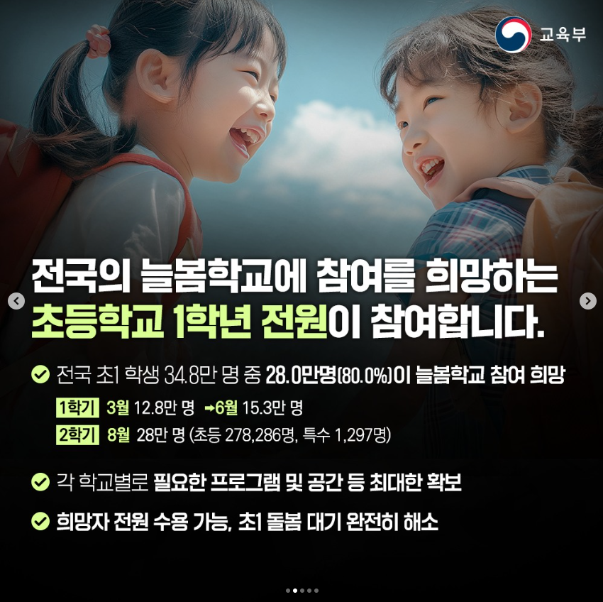 2024년 2학기 전국 모든 초등학교에 늘봄학교가 도입됩니다