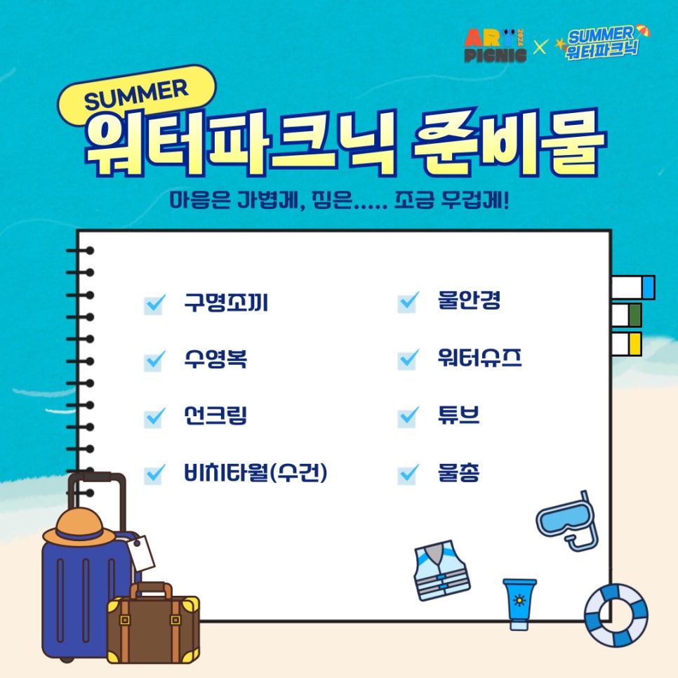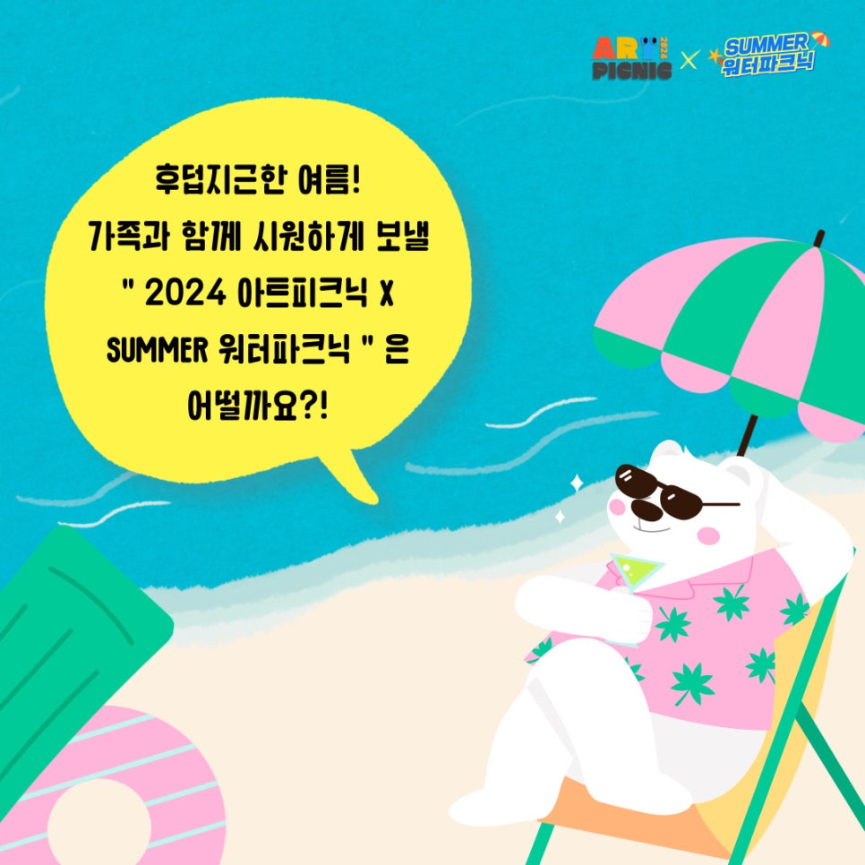 < SUMMER 워터파크닉 > 등록일 : 2024-08-23 15:46 작성자 : 운영자 조회수 : 341 첨부파일 워터피크닉.png 다운로드 < SUMMER 워터파크닉 > 프로그램 안내 2024 아트피크닉 x SUMMER 워터파크닉 에 여러분들을 초대합니다!🙌🙌[출처] < SUMMER 워터파크닉 > 프로그램 안내|작성자 2024 아트피크닉 목록