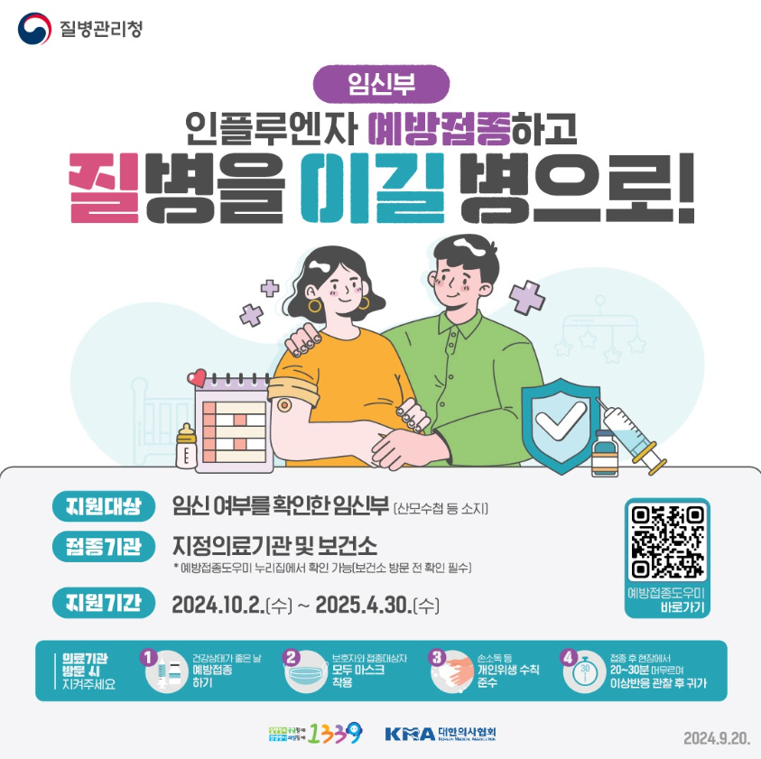 어린이・임신부 독감 무료 예방접종 기간 확인하세요! 등록일 : 2024-10-07 09:09 작성자 : 운영자 조회수 : 562 첨부파일 1.png 다운로드 어린이・임신부 독감 무료 예방접종 기간 확인하세요!쌀쌀해지는 환절기 가을이 되면독감예방 접종 맞으시죠?어린이, 임신부와 65세 이상 어르신을 대상으로독감 무료 예방접종을 순차적으로 실시합니다.해당 접종 시기 확인하고 독감 무료 예방접종으로 질병 예방하세요! [출처 : 광주광역시] 목록