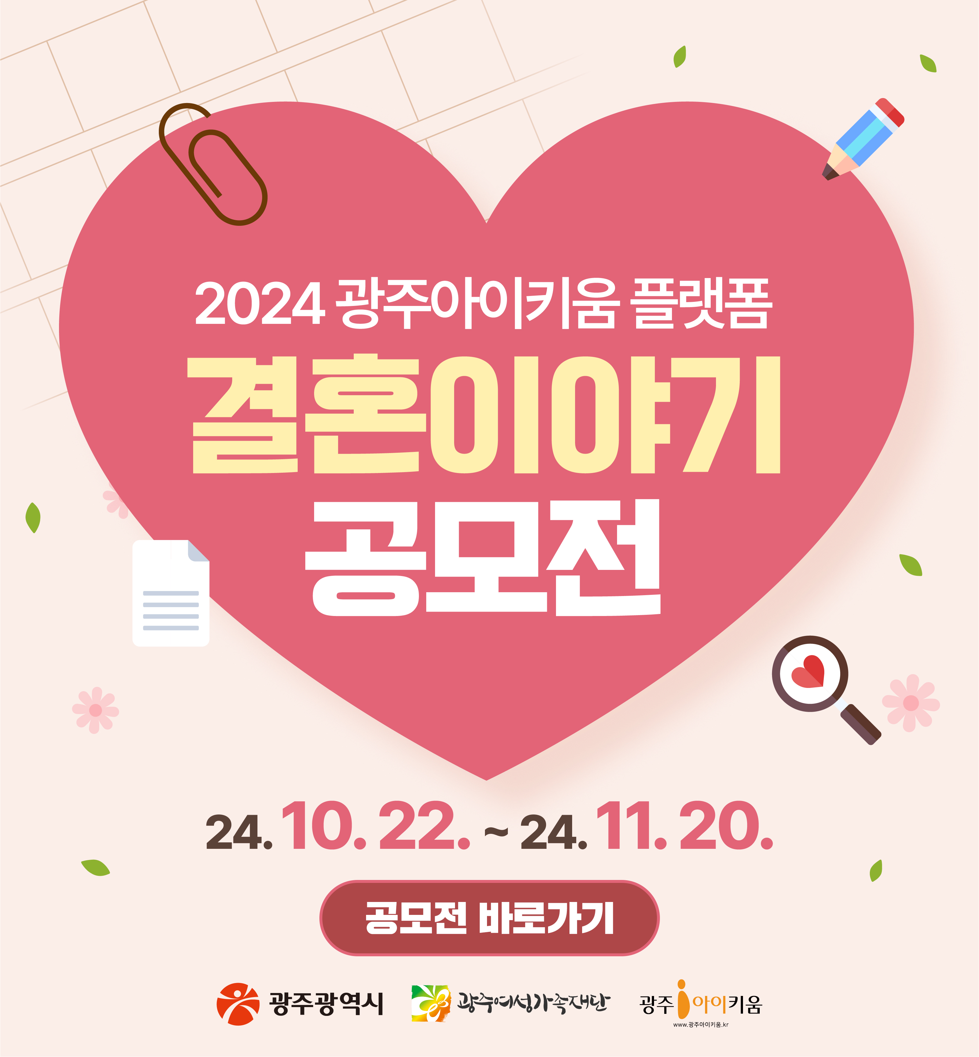 ✨[참여행사] 2024 결혼이야기 공모전✨ 등록일 : 2024-10-21 12:44 작성자 : 운영자 조회수 : 555 첨부파일 KakaoTalk_20241021_101938882.png 다운로드 목록