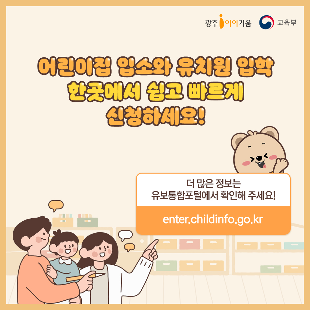 어린이집 입소와 유치원 입학 이제 한곳에서 쉽고 빠르게 신청하세요!