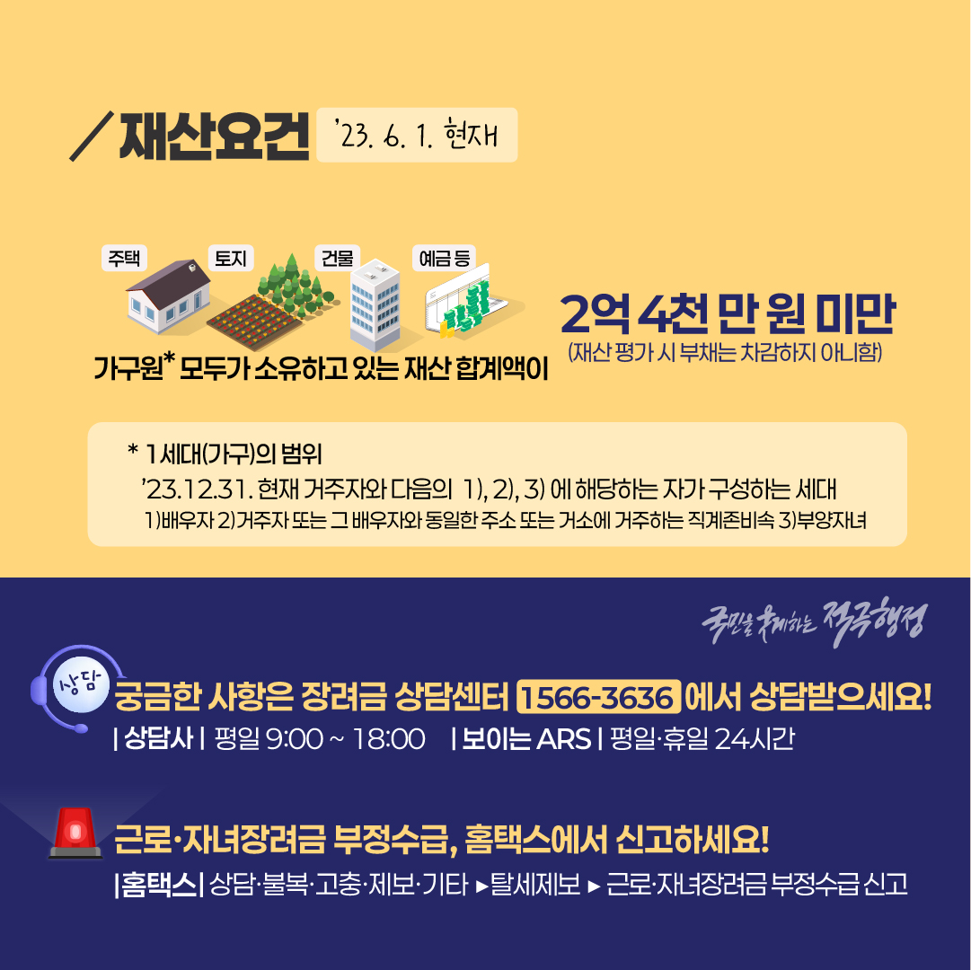 가구, 소득, 재산 요건이 모두 충족되는 근로·사업 ·종교인 소득이 있는 거주자