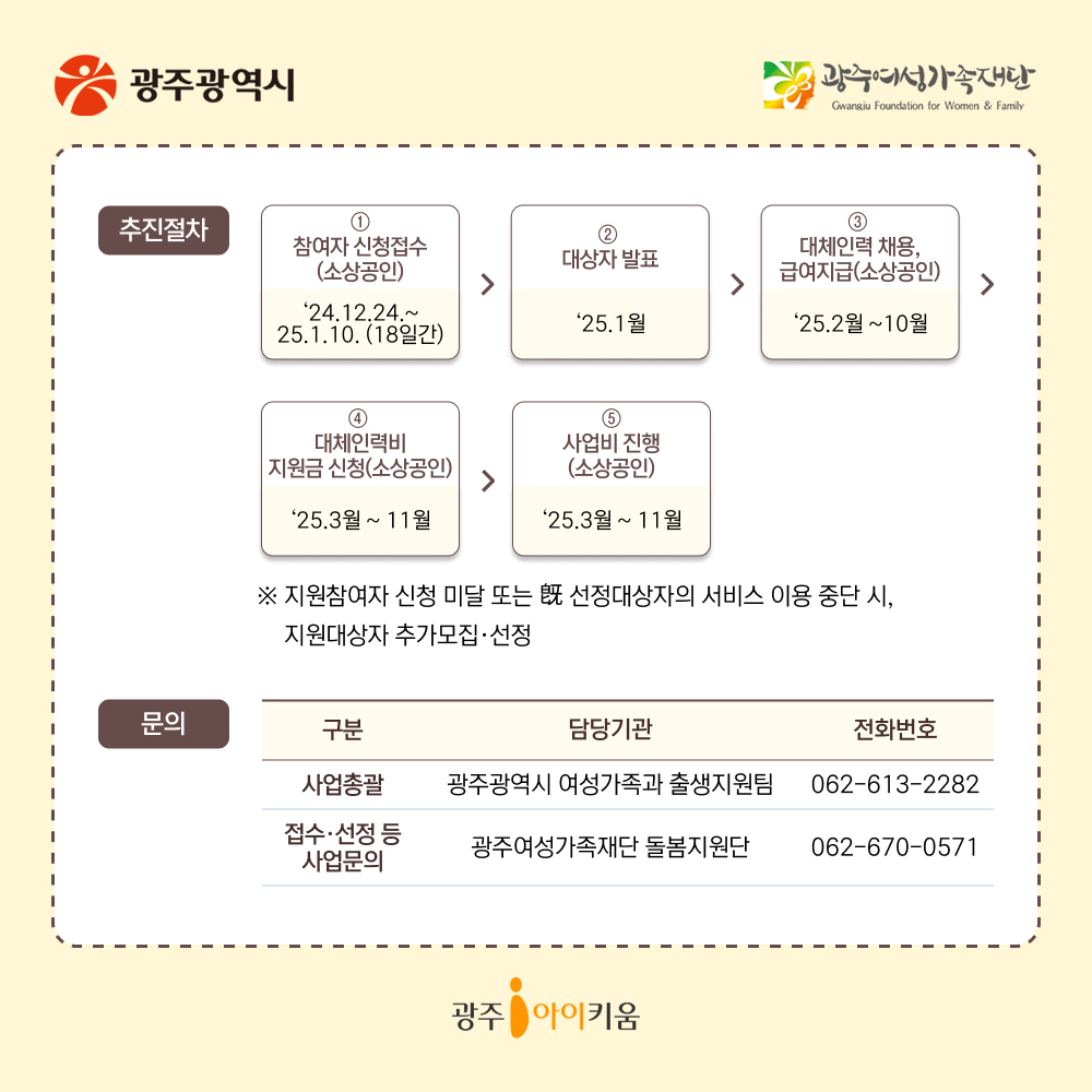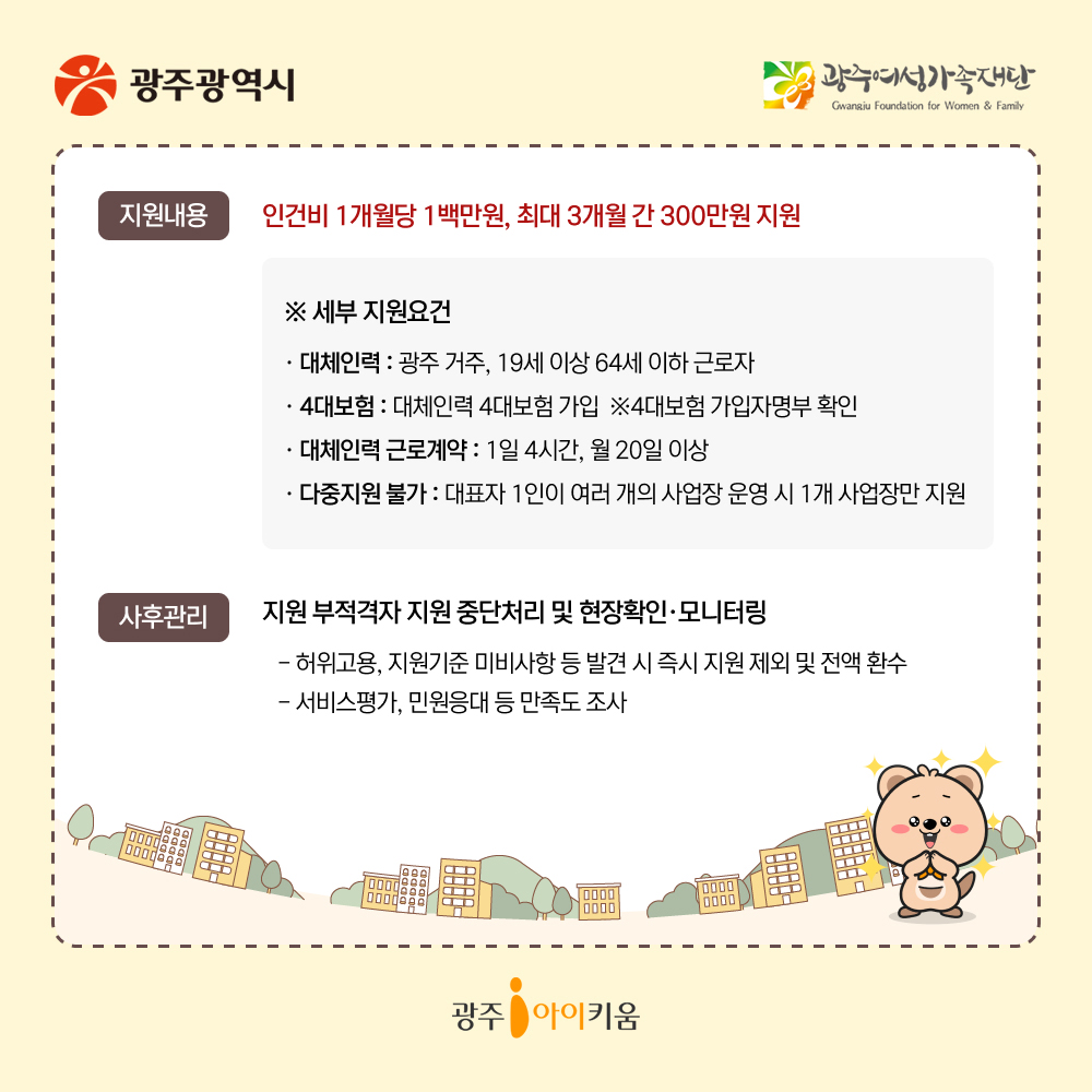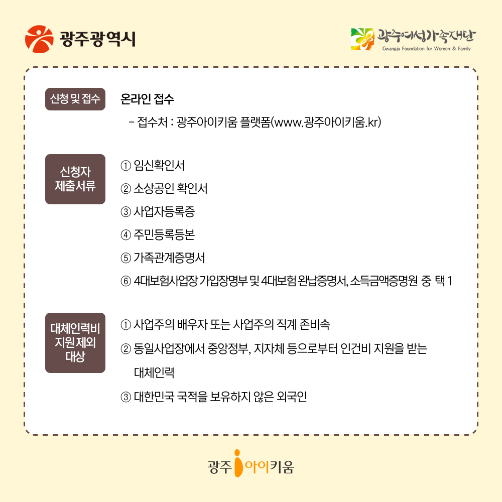 소상공인 육아응원패키지 ⸢1인 여성 자영업자 임신‧출산 지원사업⸥ 등록일 : 2024-12-23 16:38 작성자 : 운영자 조회수 : 222 첨부파일 소상공인(2).jpg 다운로드 소상공인 육아응원패키지 ⸢1인 여성 자영업자 임신‧출산 지원사업⸥ 참여자 모집! 목록