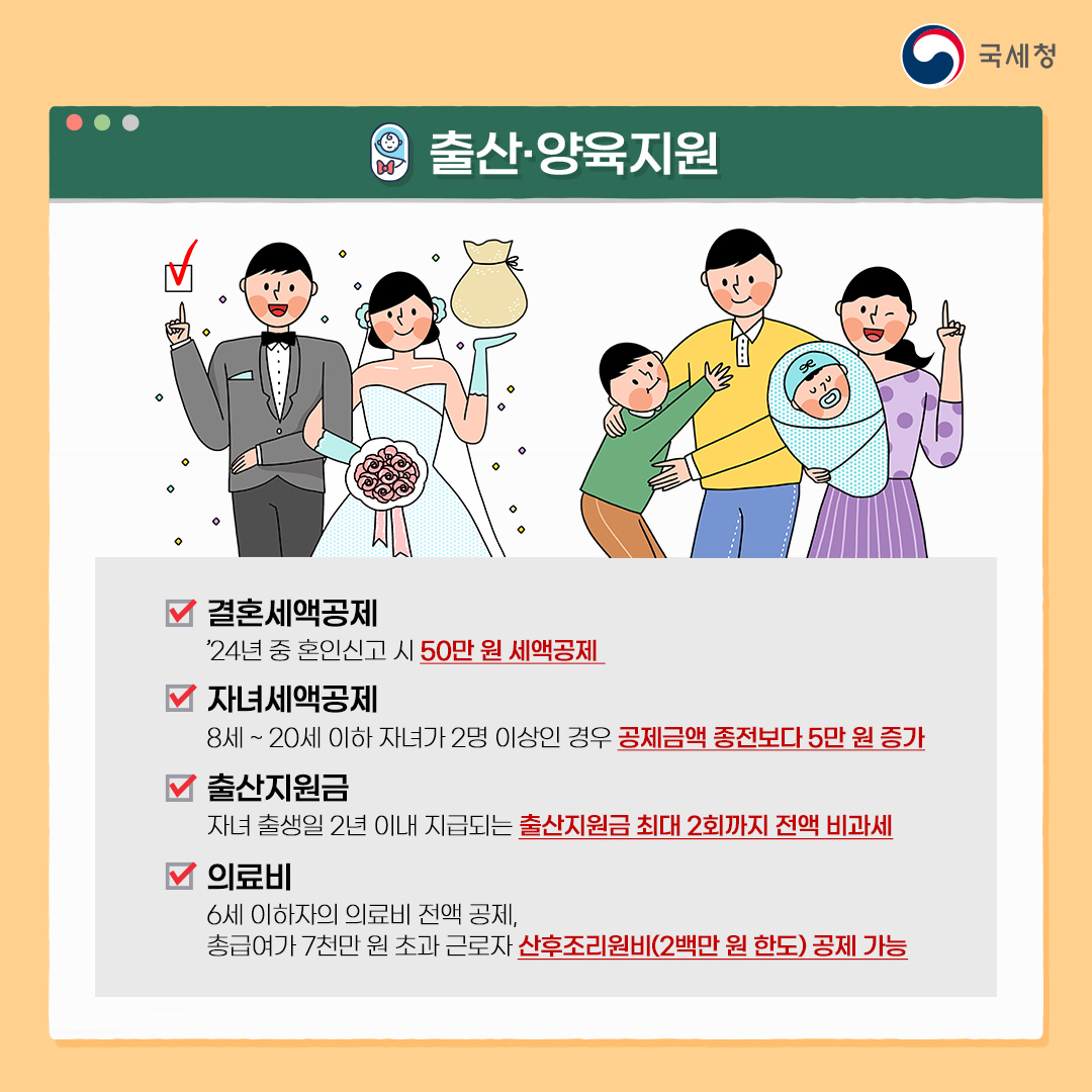 · 결혼세액공제: ’24년 중 혼인신고 시 50만 원 세액공제