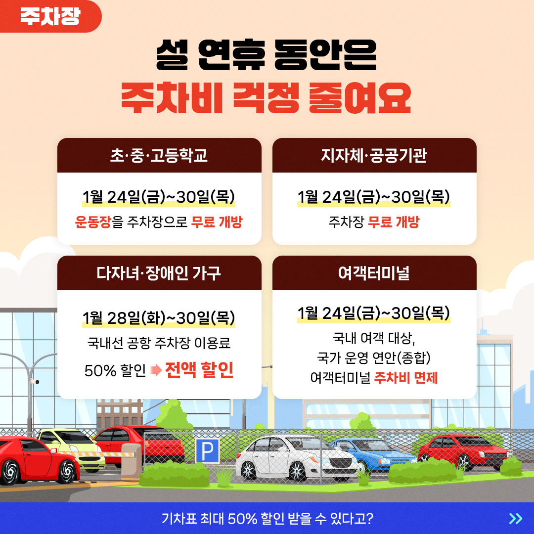 ■ 설 연휴 동안은 주차비 걱정 줄여요