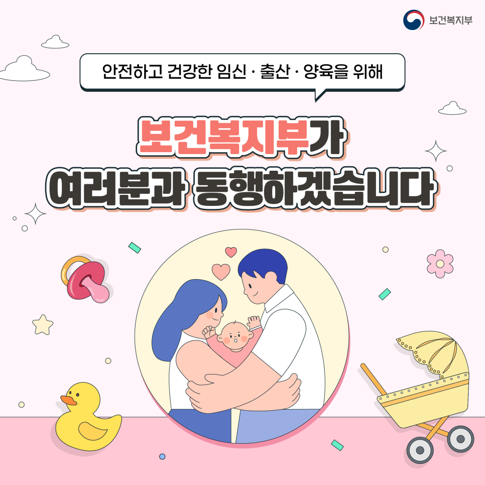 안전하고 건강한 임신·출산·양육을 위해 보건복지부가 여러분과 동행하겠습니다.