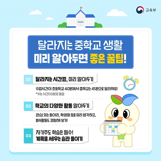 ◆ 달라지는 중학교 생활, 미리 알아두면 좋은 꿀팁!