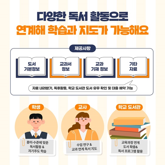 ■ 다양한 독서 활동으로 연계해 학습과 지도가 가능해요.