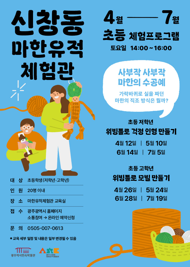 [역사민속박물관] 뚝딱뚝딱 공작소 🔨 역사속으로 들어가보아요 ! 등록일 : 2025-04-10 09:42 작성자 : 운영자 조회수 : 99 첨부파일 역사민속박물관_유아프로그램.jpg 다운로드 * 교육 세부 일정 및 내용은 일부 변경될 수 있음 [출처: 광주역사민속박물관] 목록