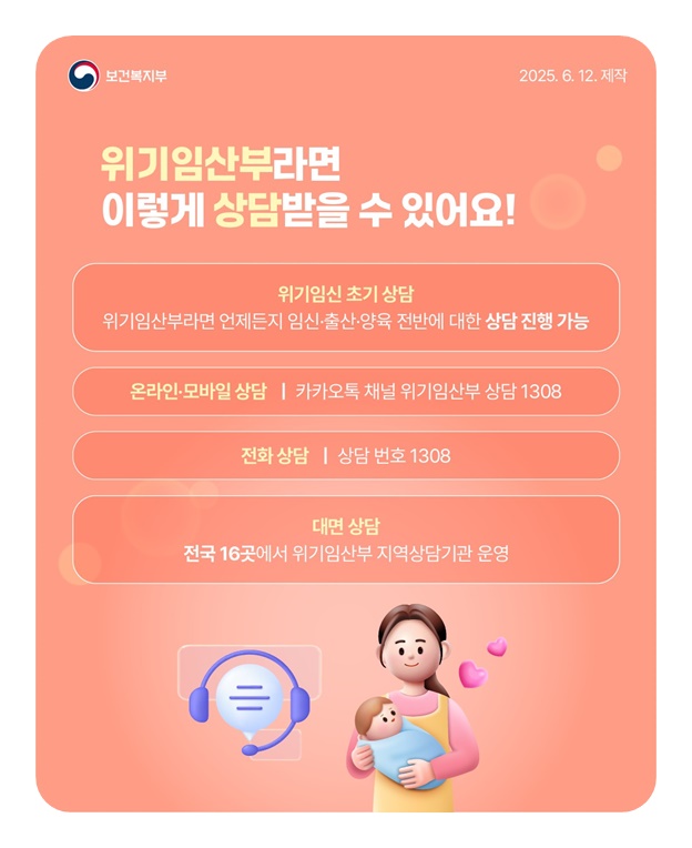 · 온라인·모바일 상담: 카카오톡 채널 위기임산부 상담 1308