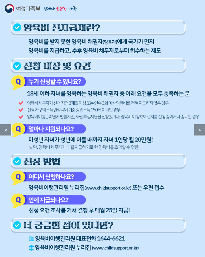양육비 못 받는 한부모가족! 이제는 국가가 먼저 드려요
