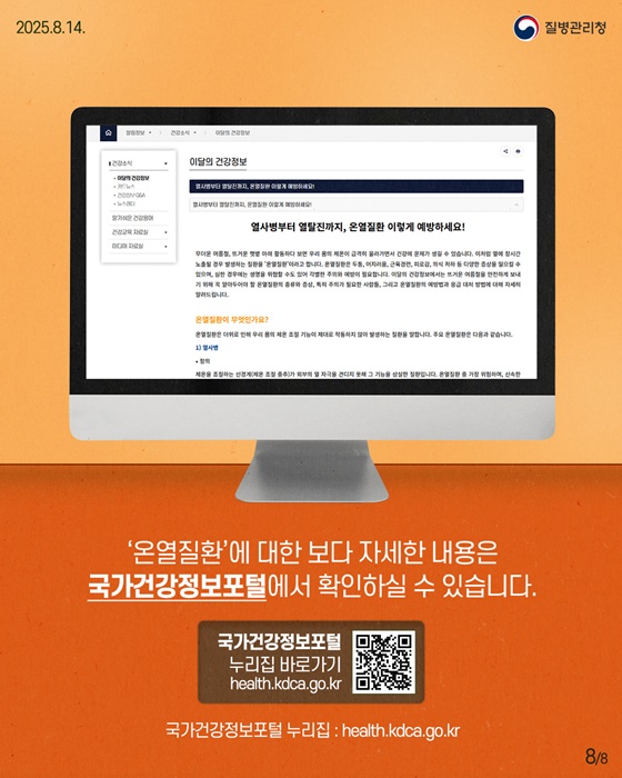 '온열질환'에 대한 보다 자세한 내용은 국가건강정보포털에서 확인하실 수 있습니다.