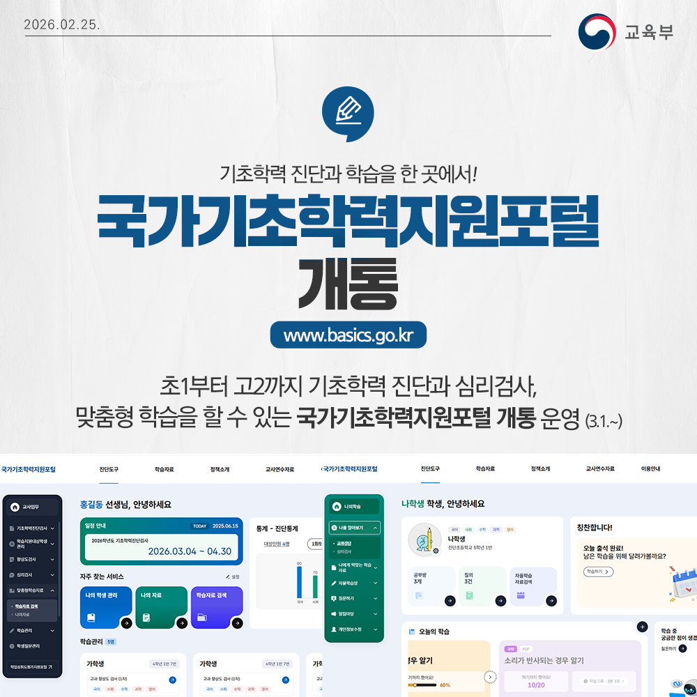 3️⃣ 국가기초학력지원포털 개통