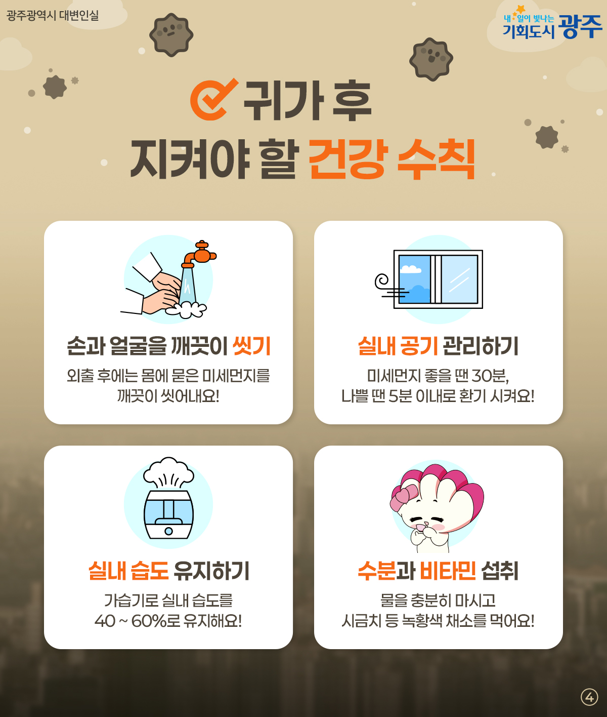home 맘편한 내★일, 광주아이키움2.0 결혼·임신·출생 영유아 초·중·고 다양한 가족 일생활균형 커뮤니티 아동돌봄지원 소통방 나눔방 광주 아이키움 상담방 돌봄정보방 성폭력 피해 지원 안내 공지사항 이벤트소식 참여게시판 카드뉴스 동영상 아이키움 칼럼 성평등 육아웹툰 로고&캐릭터 미세먼지 대응 TIP! 봄철 미세먼지 지금부터 체크하세요 등록일 : 2026-03-26 15:29 작성자 : 운영자 조회수 : 7 첨부파일 1.jpeg 다운로드 출처:광주광역시 목록