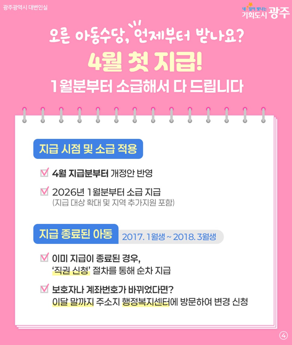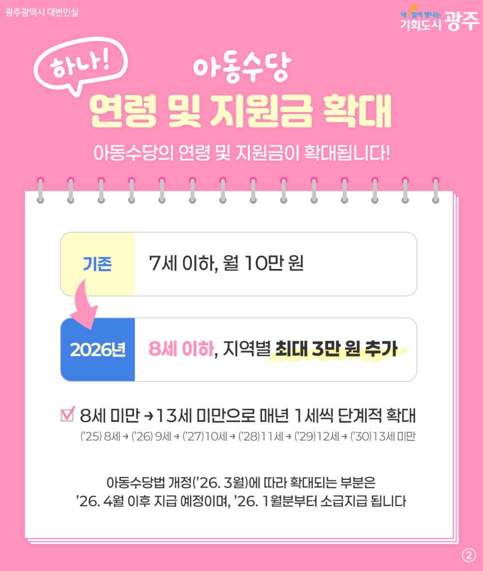 [출처] 확! 달라진 2026년 아동수당 '더 오래, 더 많이 받습니다!'|작성자 광주광역시