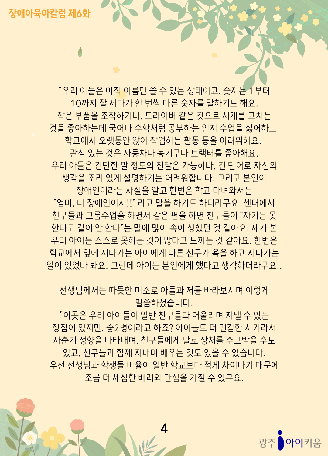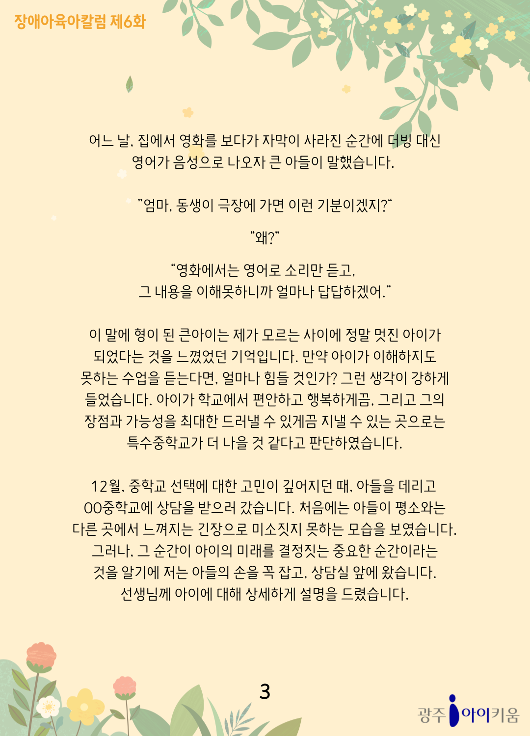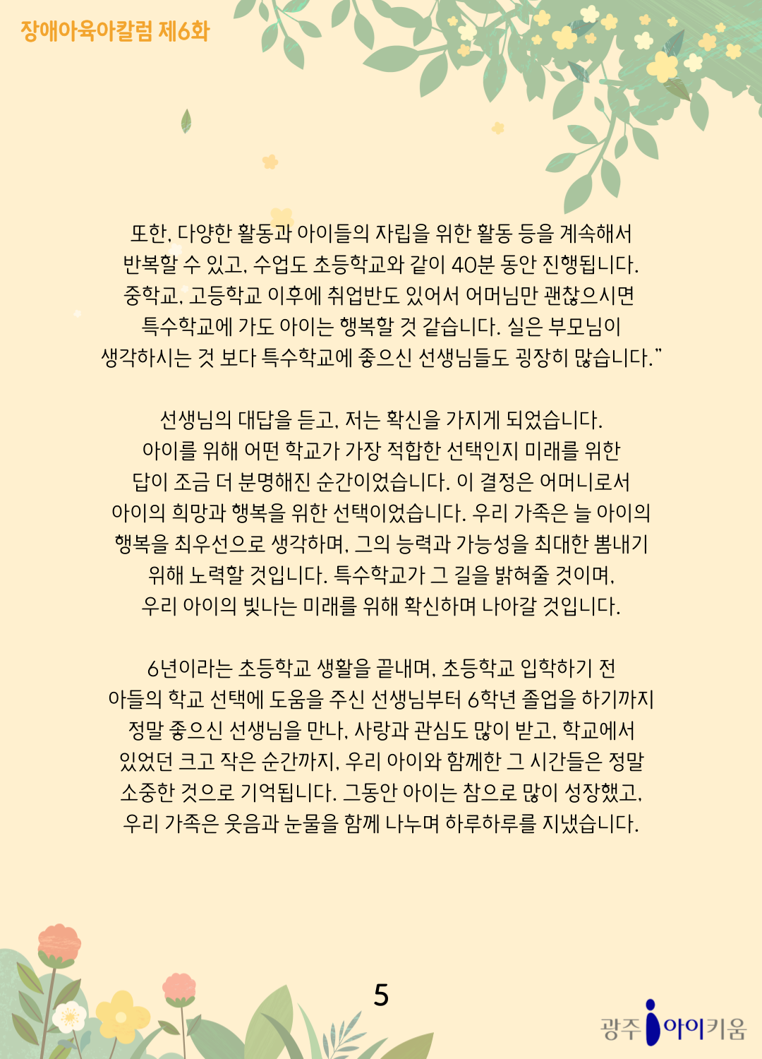 [장애아육아칼럼] 6화- 우리아이의 행복을 위한 선택