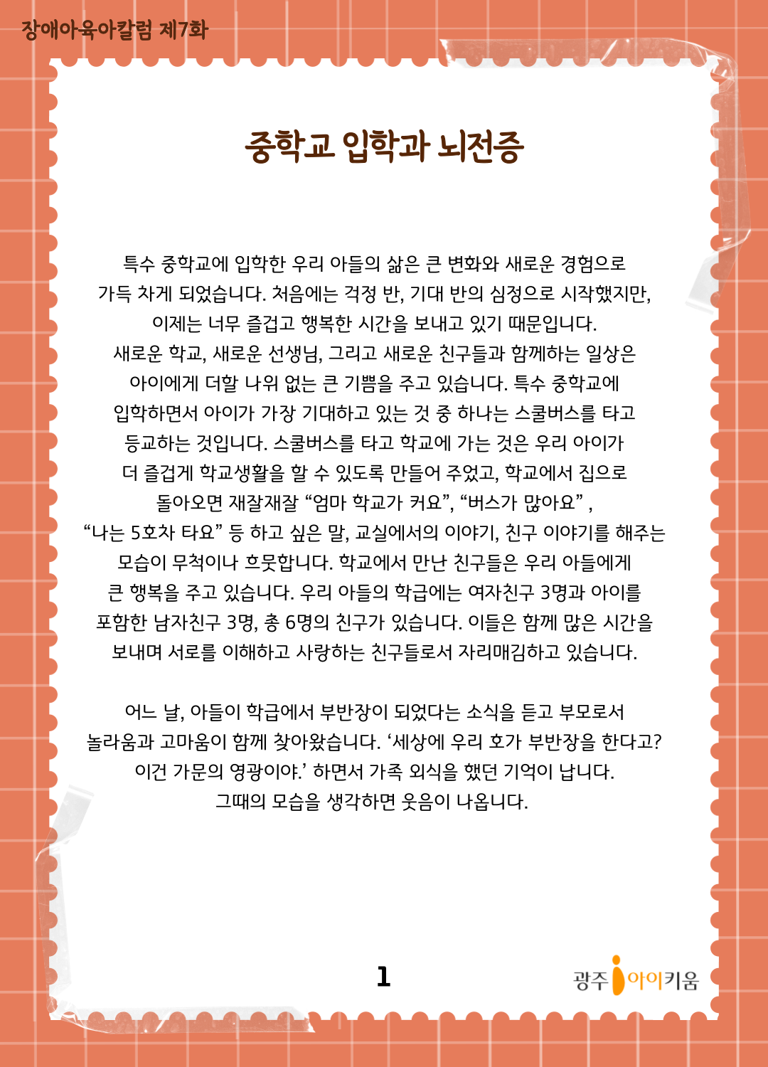 [장애아육아칼럼] 7화- 중학교 입학과 뇌전증