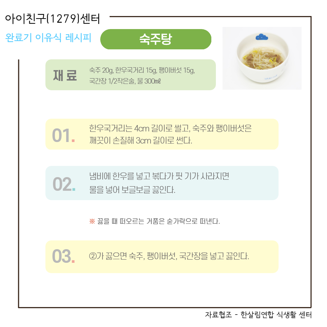 완료기 이유식 레시피 - 숙주탕