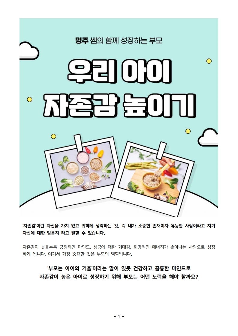 <명주쌤과 함께하는 이유식 레시피 18편> 우리 아이 자존감 높이기