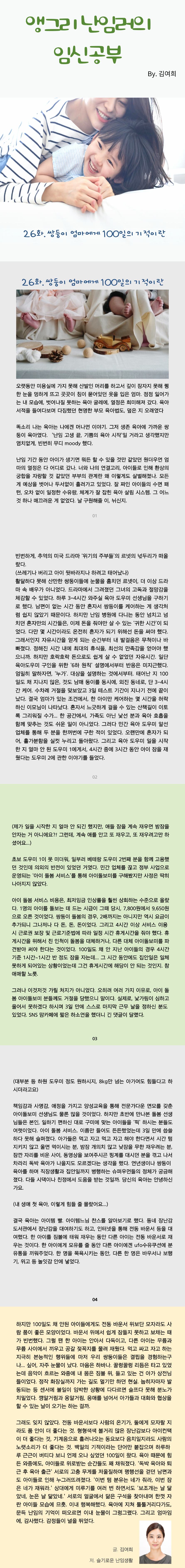 <앵그리 난임러의 임신 공부> 26. 쌍둥이 엄마에게 100일의 기적이란 등록일 : 2021-11-11 14:04 카테고리 : 카테고리 없음 작성자 : 운영자 조회수 : 1443 목록