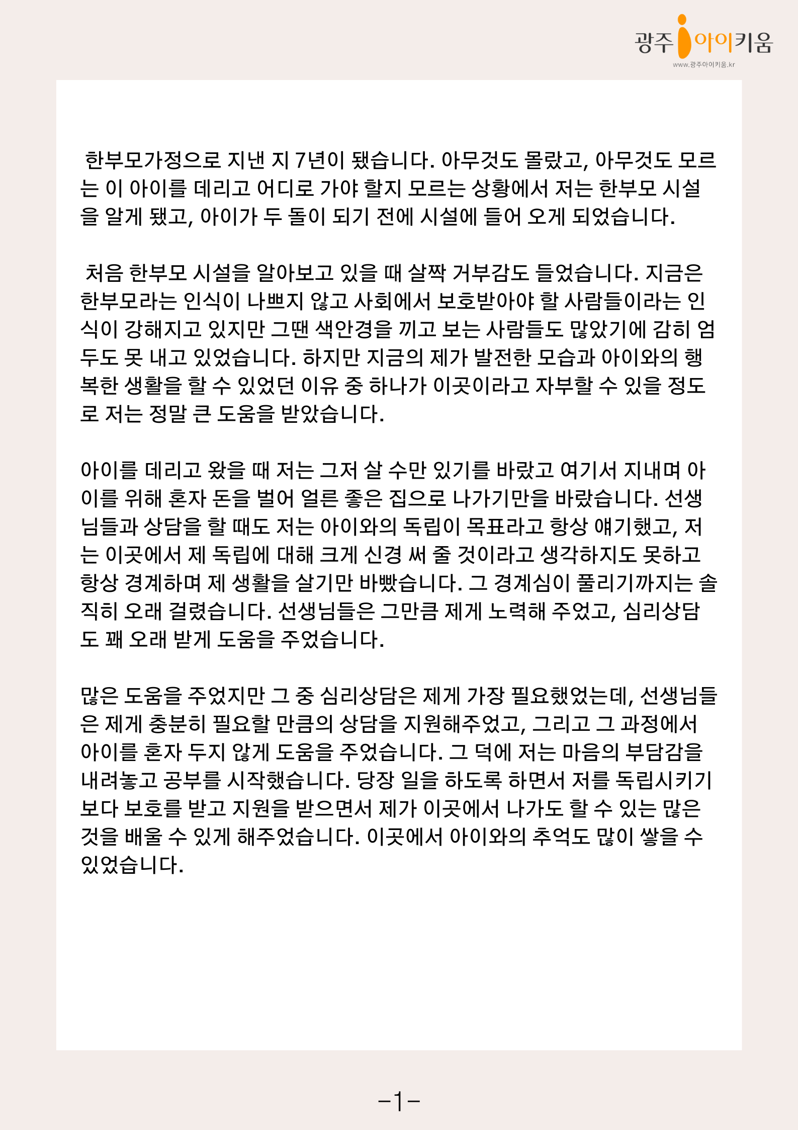 비혼모수기 1 - 모자 가족복지시설에서 지내며