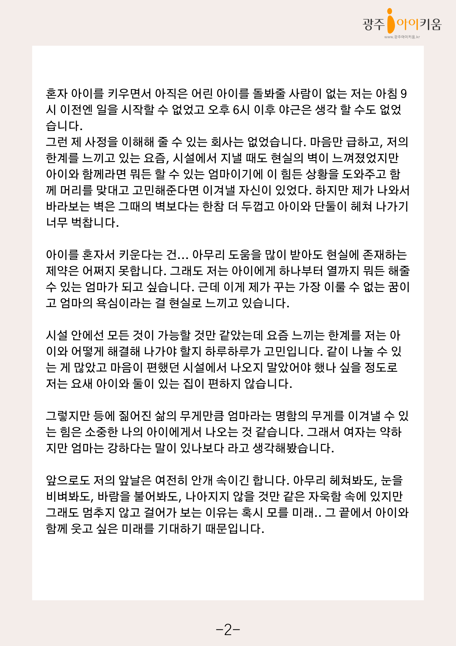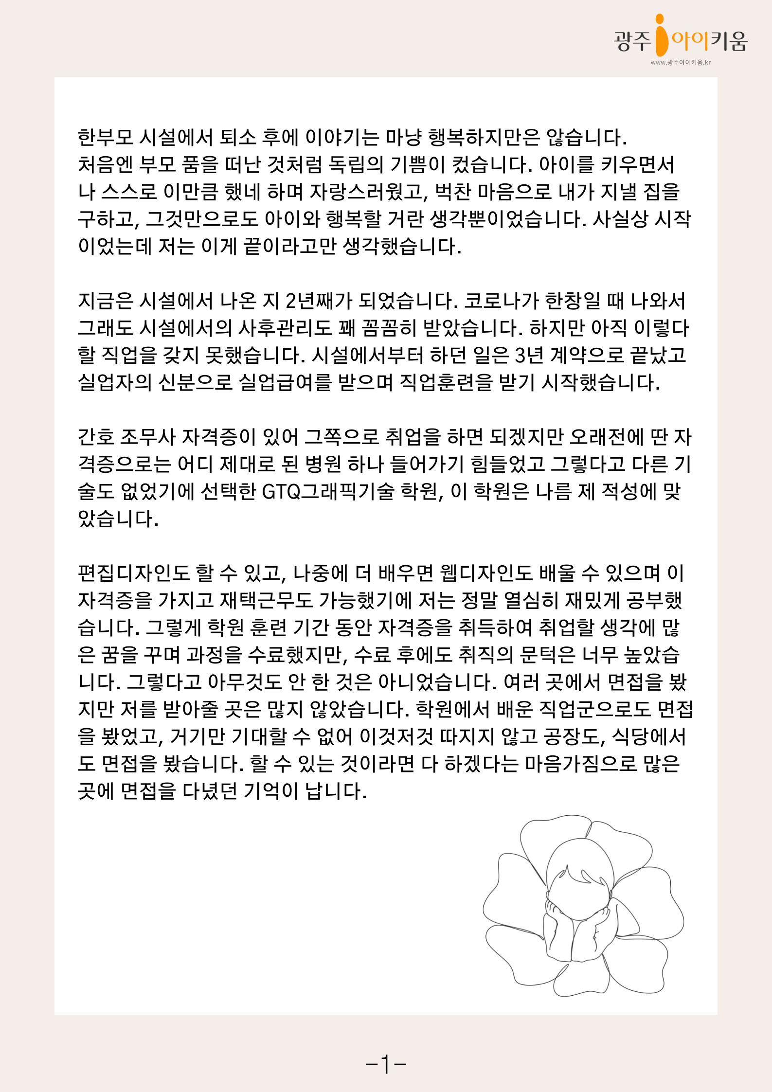 비혼모 수기 2- 한부모 시설 퇴소 후