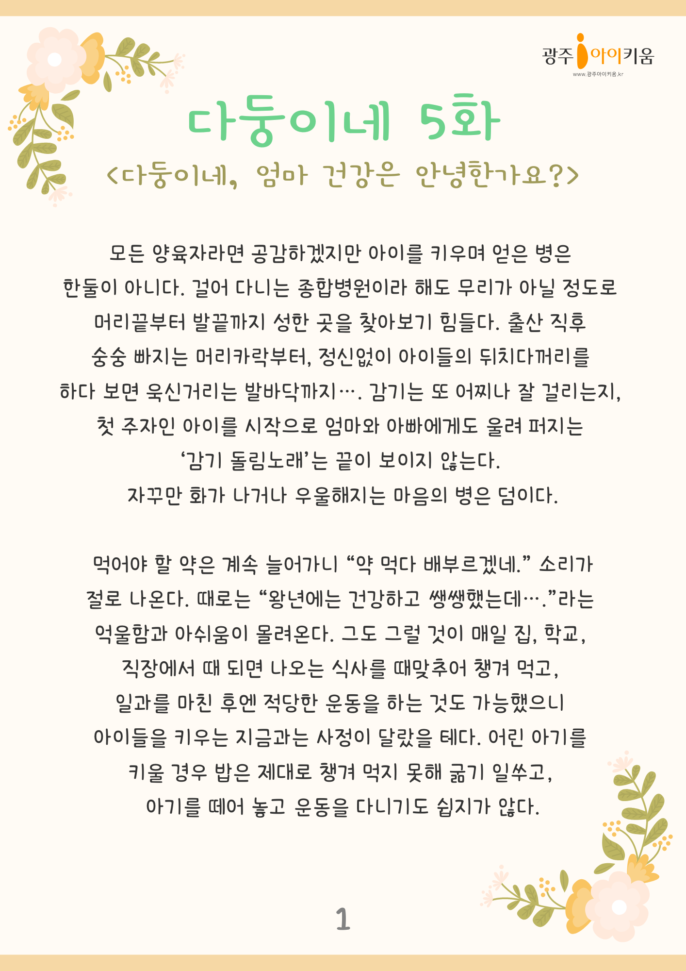 [다자녀육아] 5화- 다둥이네, 엄마 건강은 안녕한가요?