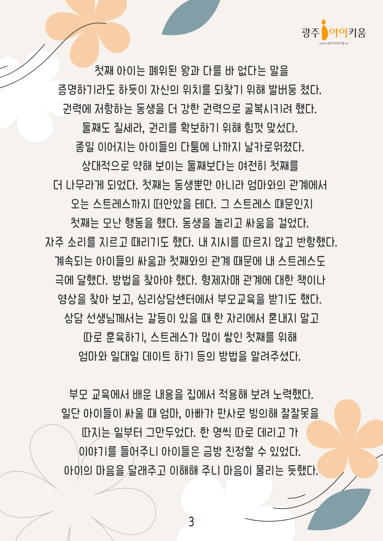 [다자녀칼럼] 7화- 아이들의 싸움으로 심리상담까지 받으며 깨달은 것