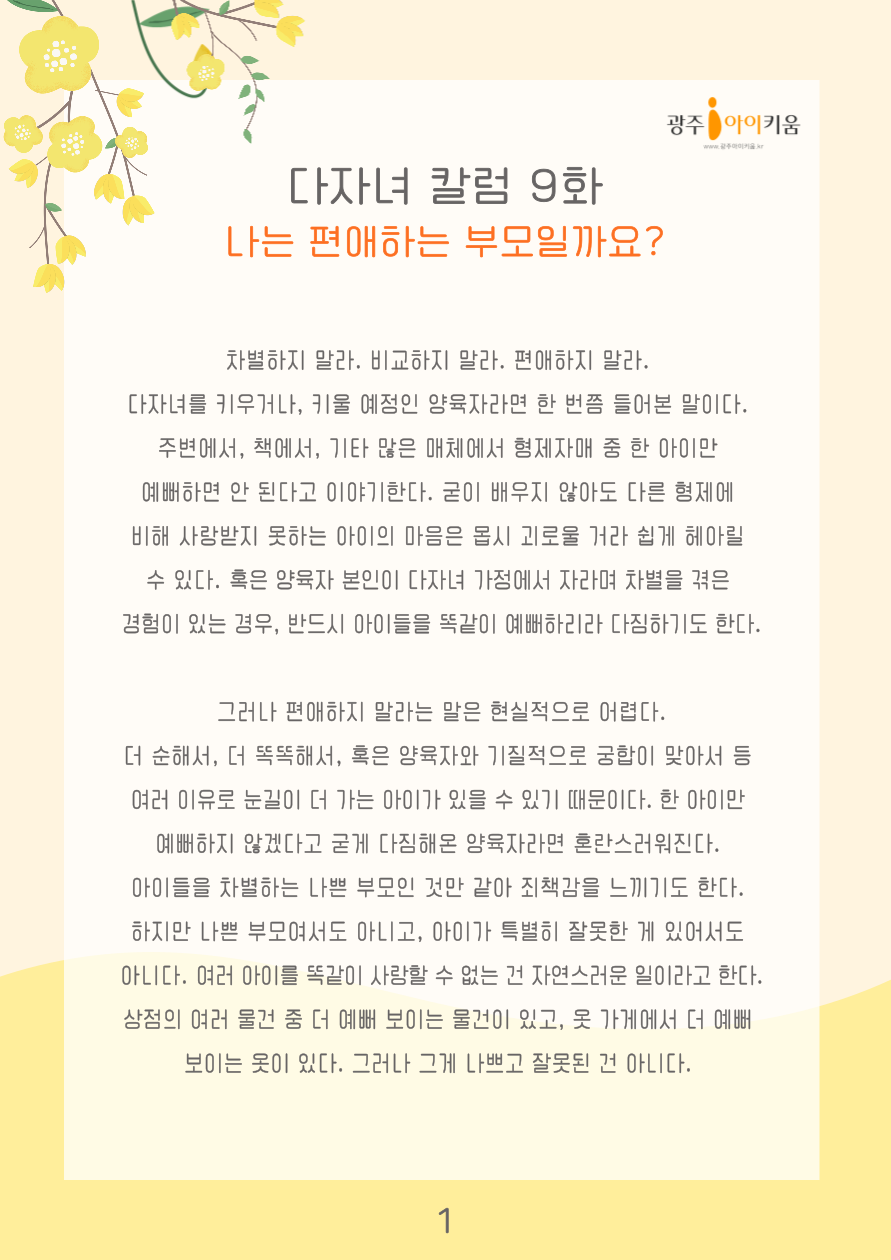[다자녀칼럼] 9화- 나는 편애하는 부모일까요