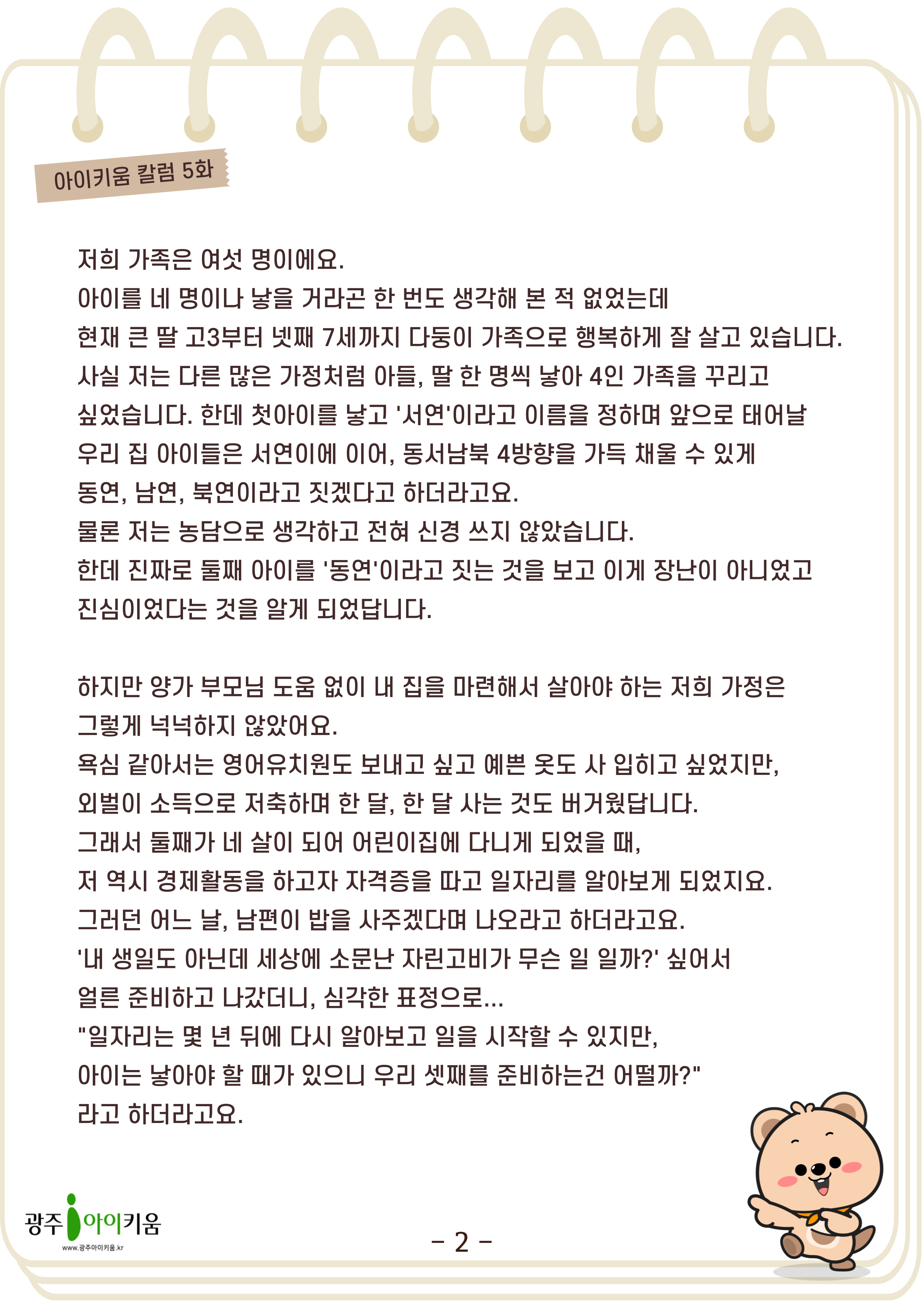 [육아칼럼] 5화 - 내 인생의 로또, 당신! 등록일 : 2025-03-06 11:09 카테고리 : 카테고리 없음 작성자 : 운영자 조회수 : 229 첨부파일 000.png 다운로드 목록