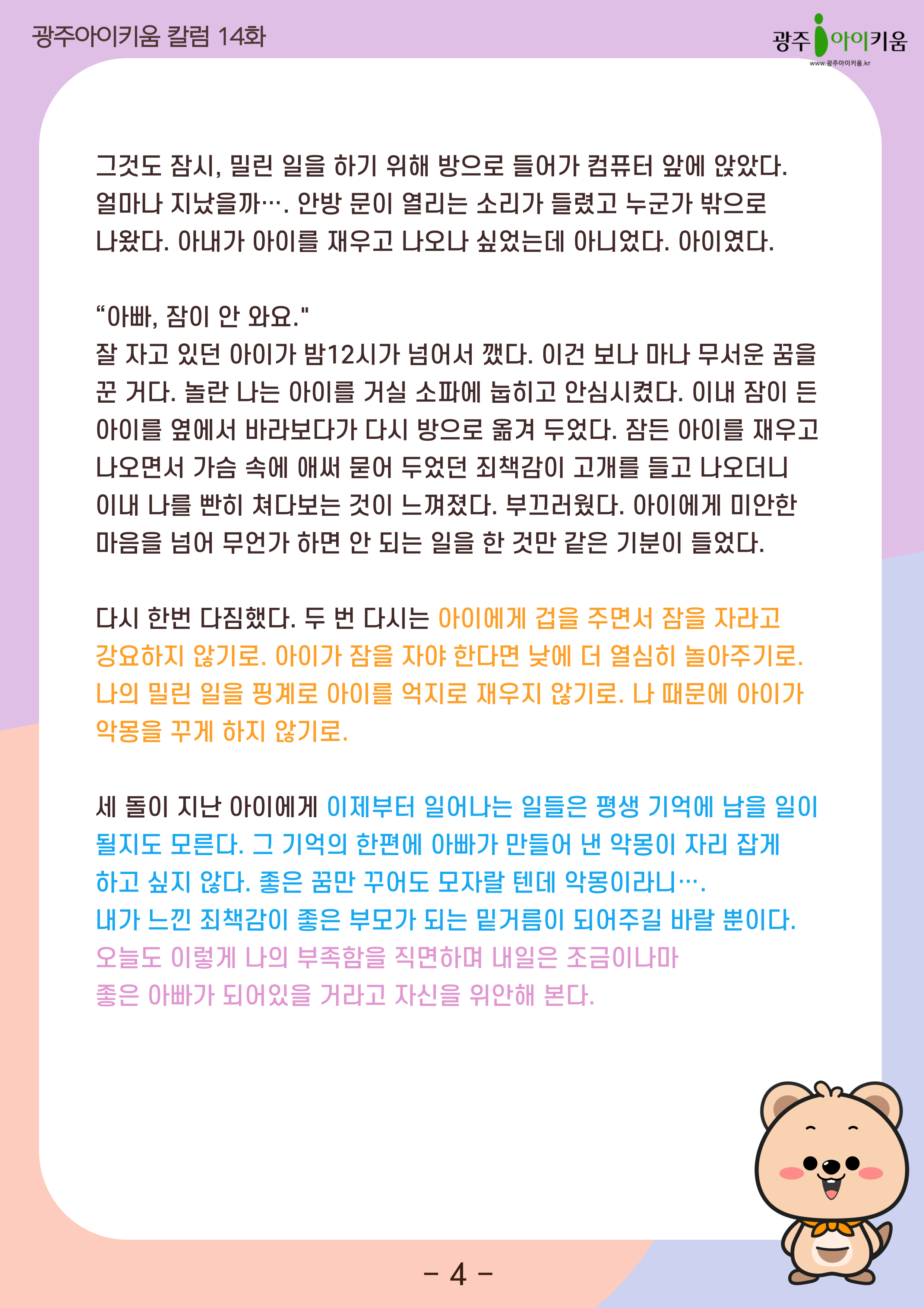 [육아칼럼] 14화 - 이놈 아저씨와 밤 할머니 등록일 : 2025-05-09 09:13 카테고리 : 카테고리 없음 작성자 : 운영자 조회수 : 164 첨부파일 2025-칼럼-14화-001.png 다운로드 목록