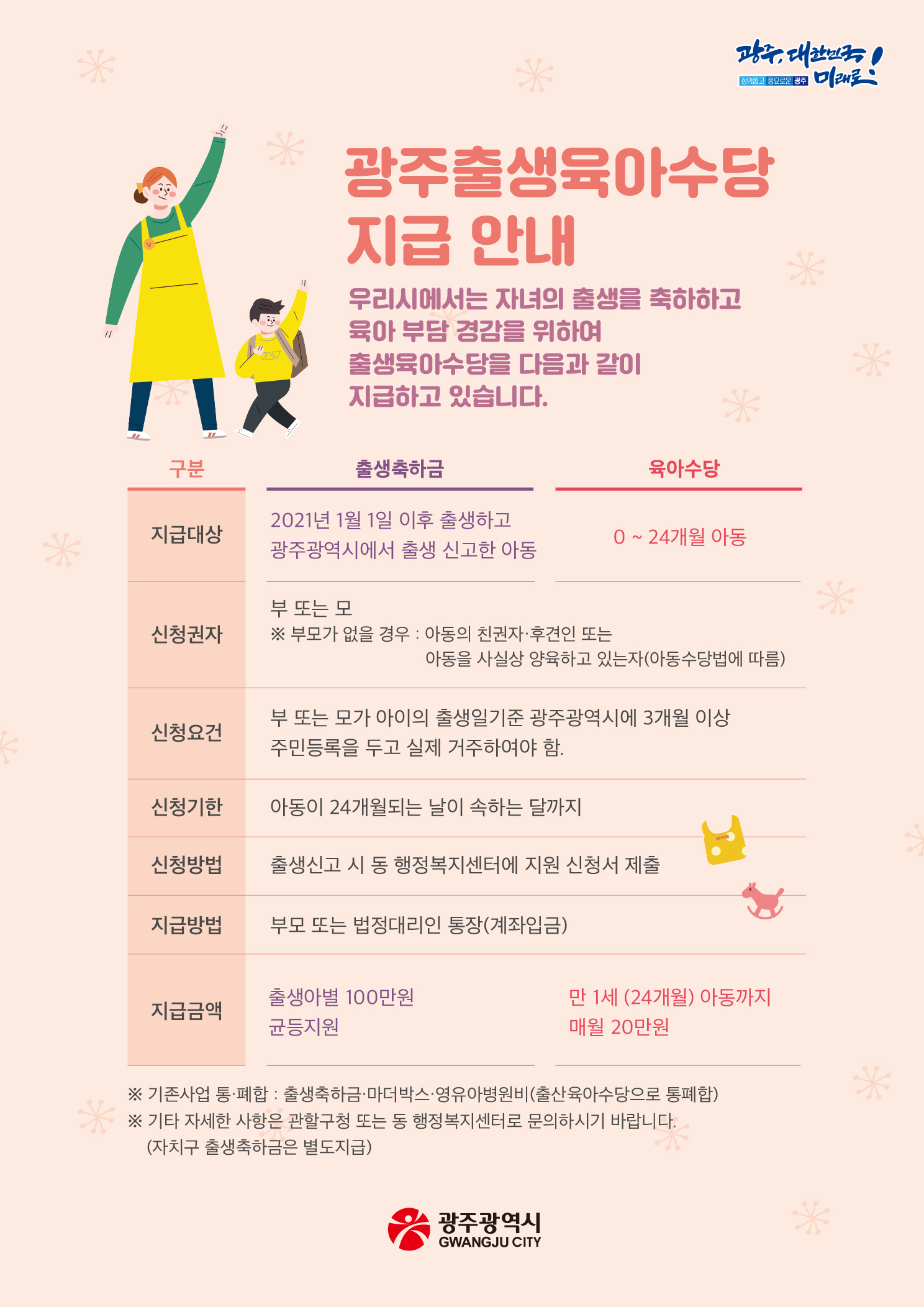 광주에서 누리세요~ Q&A로 알아보는 광주출생육아수당