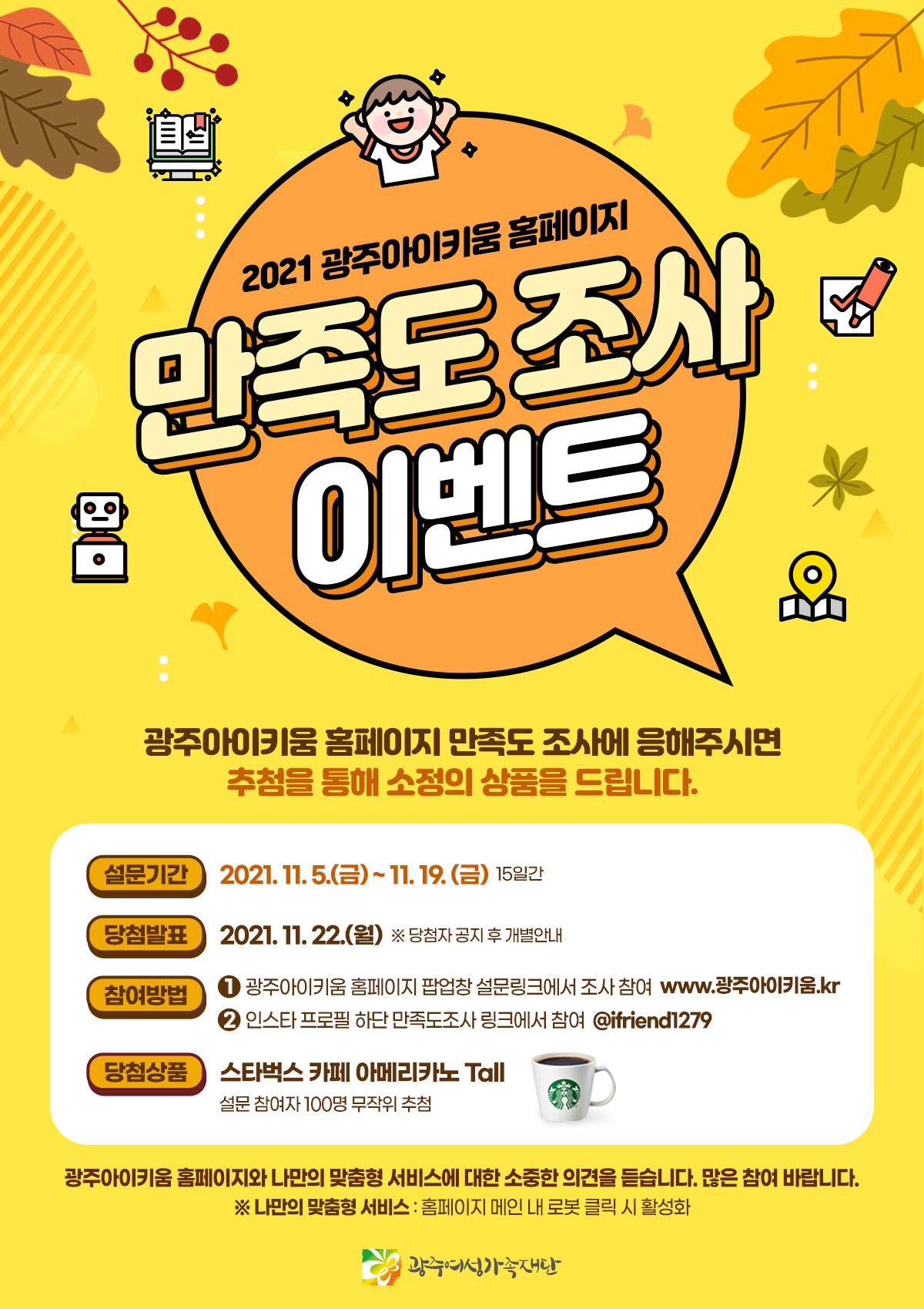 광주아이키움 홈페이지 만족도 조사 이벤트 안내