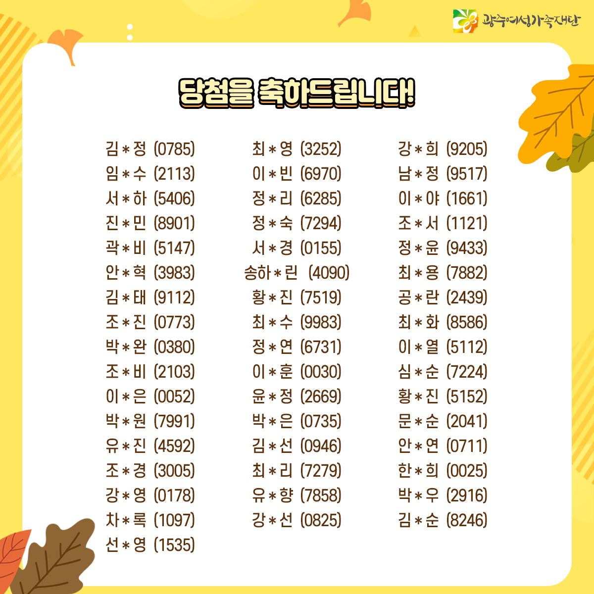 광주아이키움 홈페이지 만족도 조사 당첨자 발표