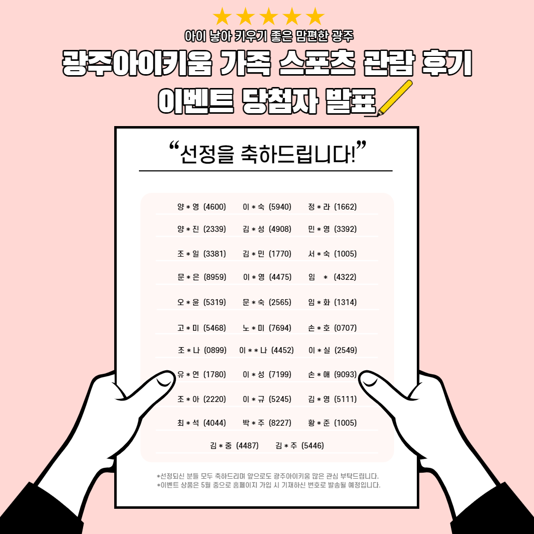 광주아이키움 4월 가족 스포츠 관람 이벤트 당첨자 발표