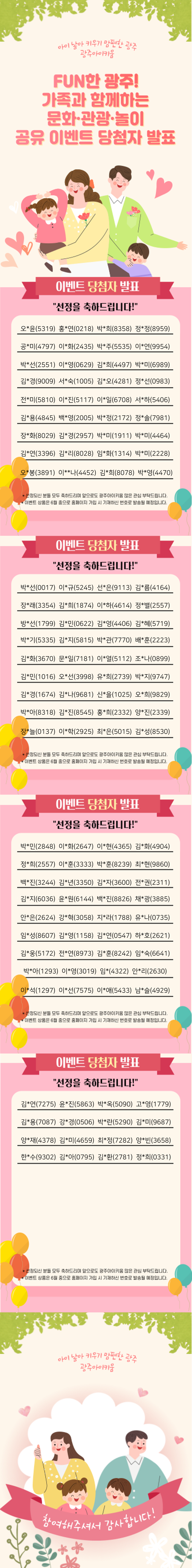 5월 가족과 함께하는 FUN한 광주! 이벤트 당첨자를 발표합니다!