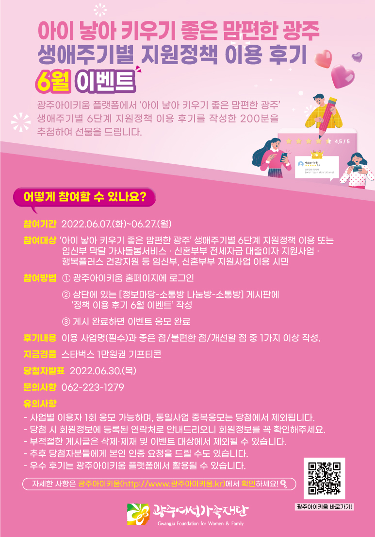 광주아이키움 생애주기별 지원정책 이용 후기 6월 이벤트