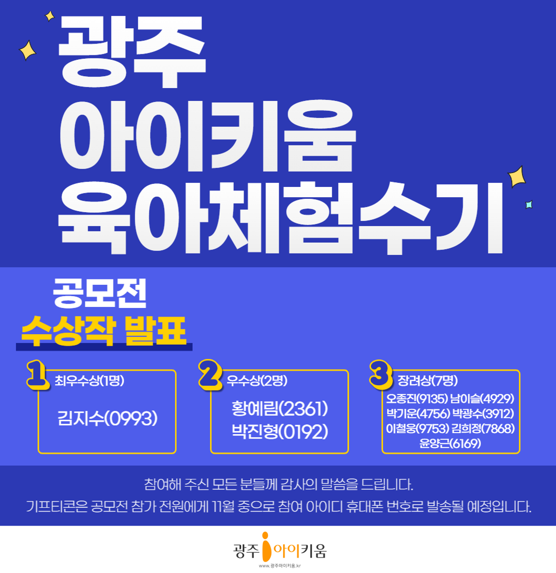 광주아이키움 육아체험수기 공모전 수상작 발표
