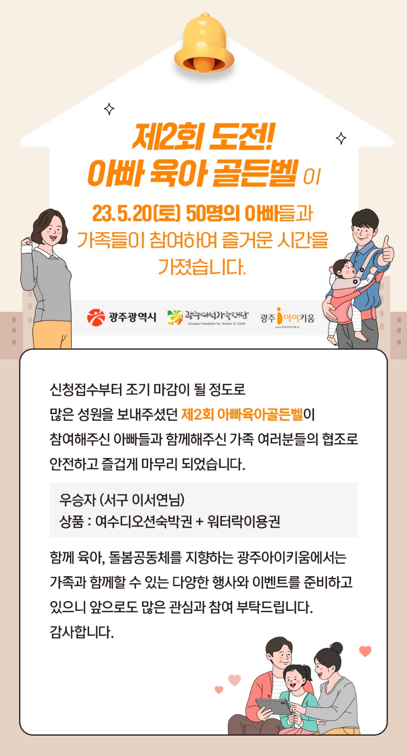 제2회 도전 아빠육아골든벨이 성원에 힘입어 안전하고 즐겁게 잘 마무리되었습니다.
