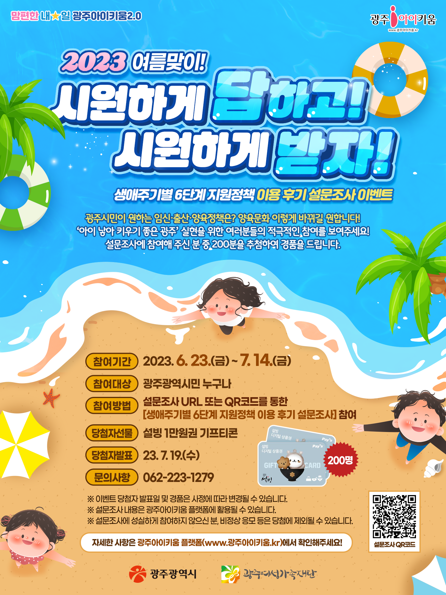 「맘편한 내☆일, 광주아이키움2.0」 생애주기별 지원정책 이용 후기 설문조사 이벤트 안내
