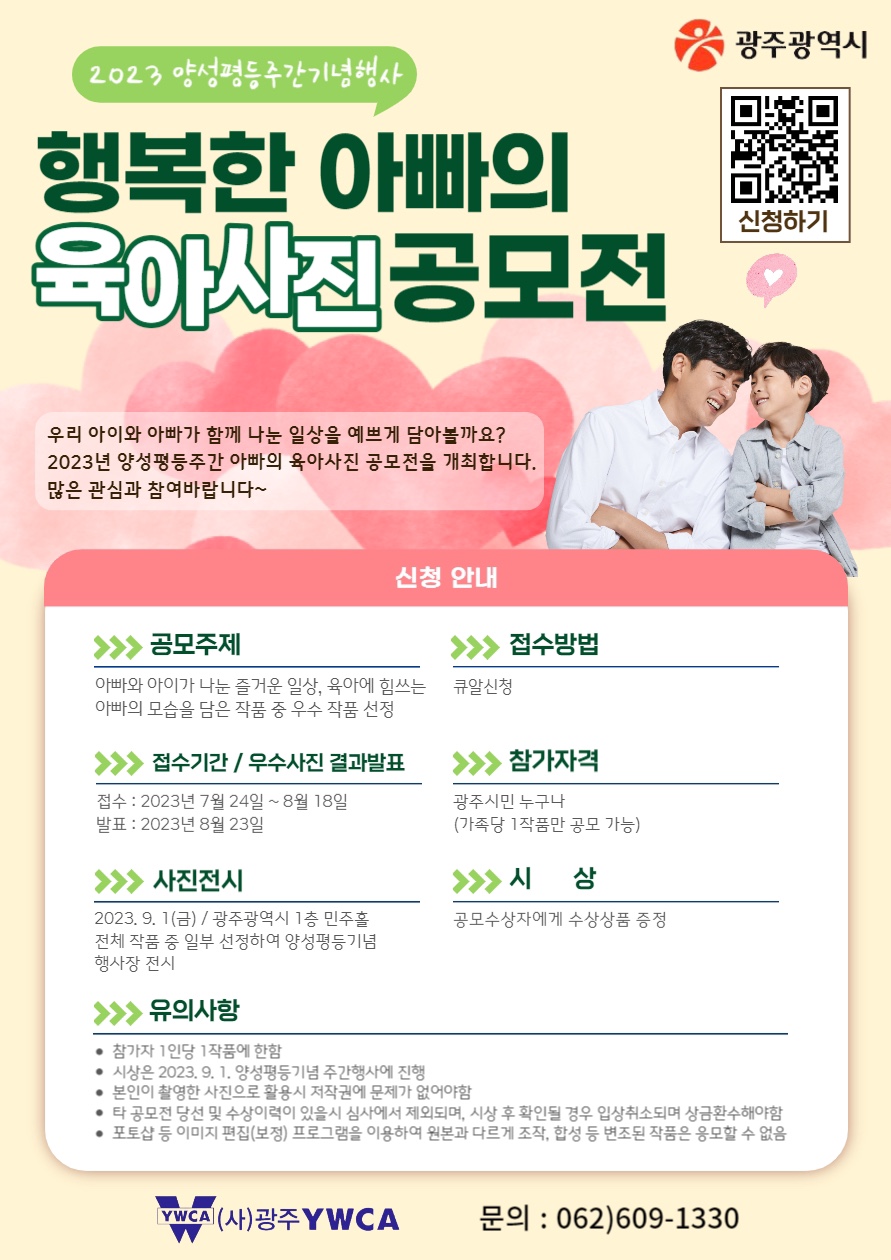 우리 아이와 아빠가 함께 나눈 일상을 예쁘게 담아볼까요? 2023년 양성평등주간 아빠의 육아사진 공모전을 개최합니다.