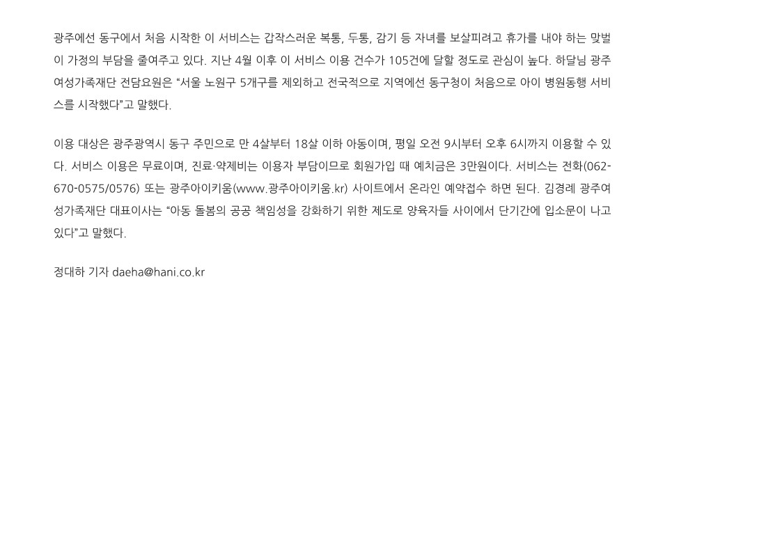[한겨레 신문] '광주 동구 아픈아이 병원동행서비스' 인기 등록일 : 2023-09-15 11:22 작성자 : 운영자 조회수 : 571 https://www.hani.co.kr/arti/area/honam/1108543.html 목록