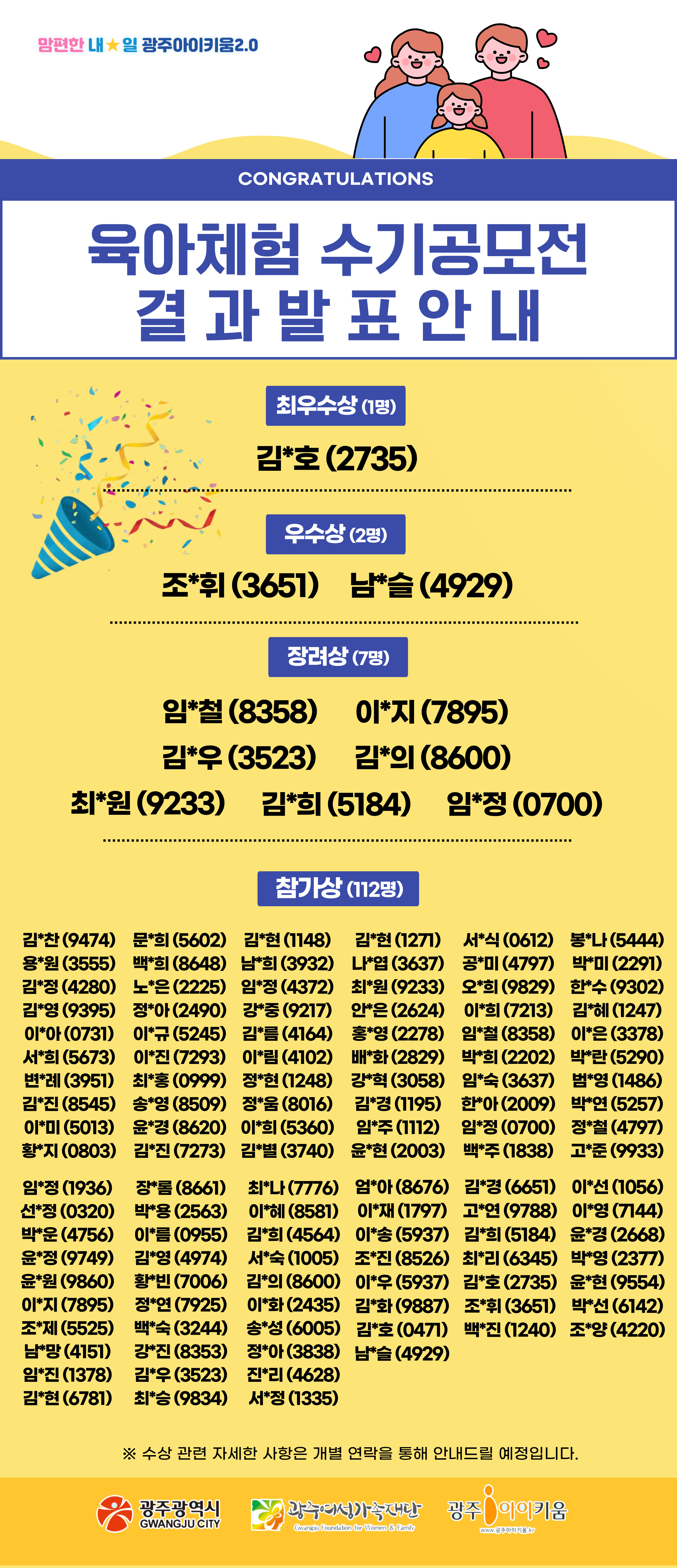 2023년 광주아이키움 플랫폼 육아 체험 수기 공모전 수상작 발표