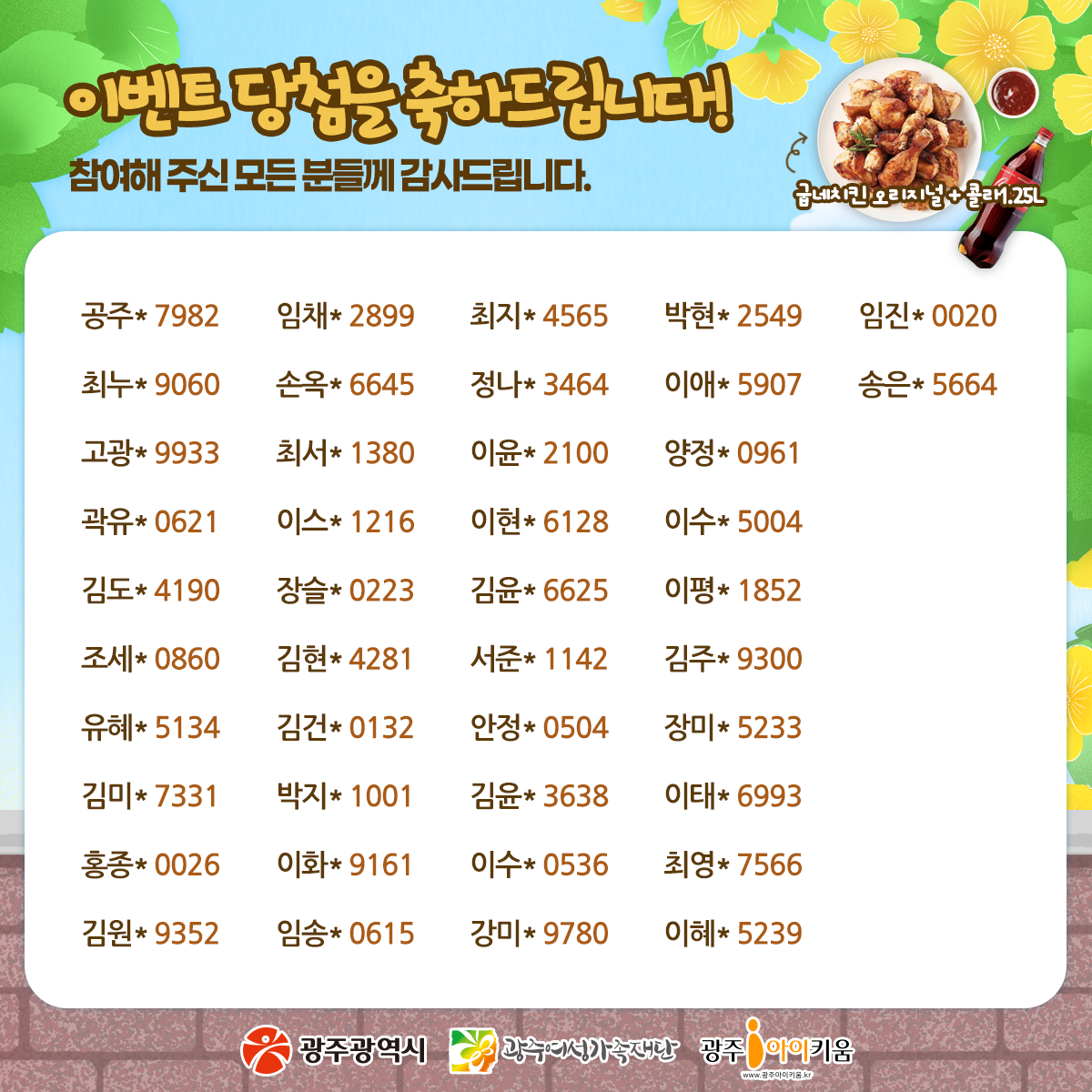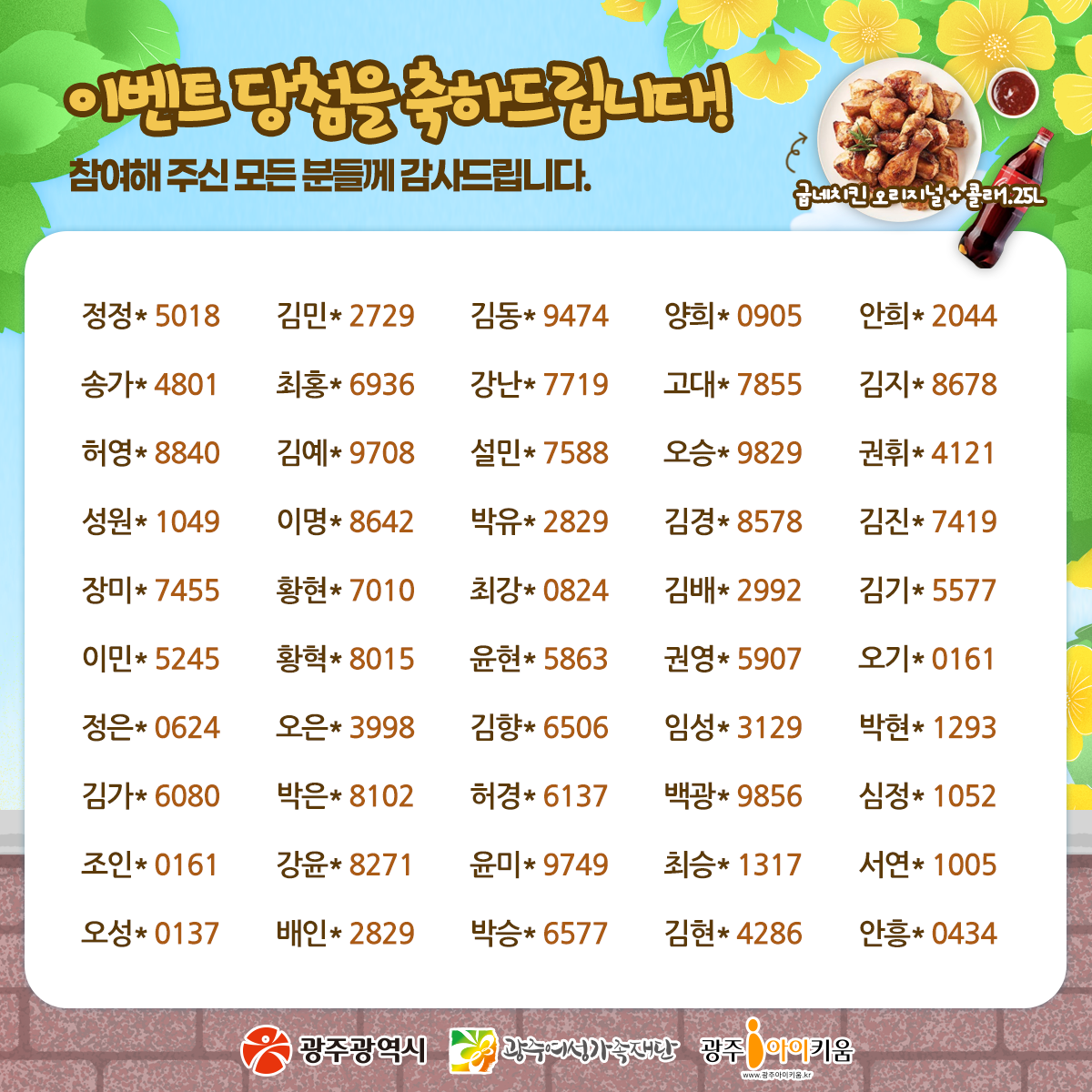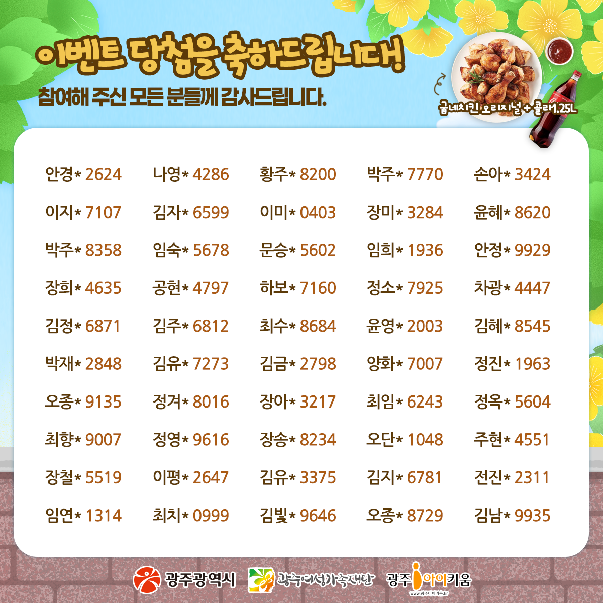 '아이 낳아 키우기 좋은 맘편한 광주' 광주아이키움 플랫폼 『가족과 함께하는 꿀잼 광주 즐기기』 이벤트 당첨자를 발표합니다.