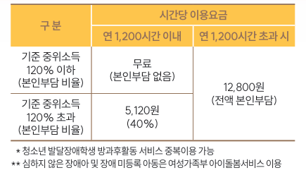 - 심하지 않은 장애아 및 장애 미등록 아동은 여성가족부 아이돌봄서비스 이용