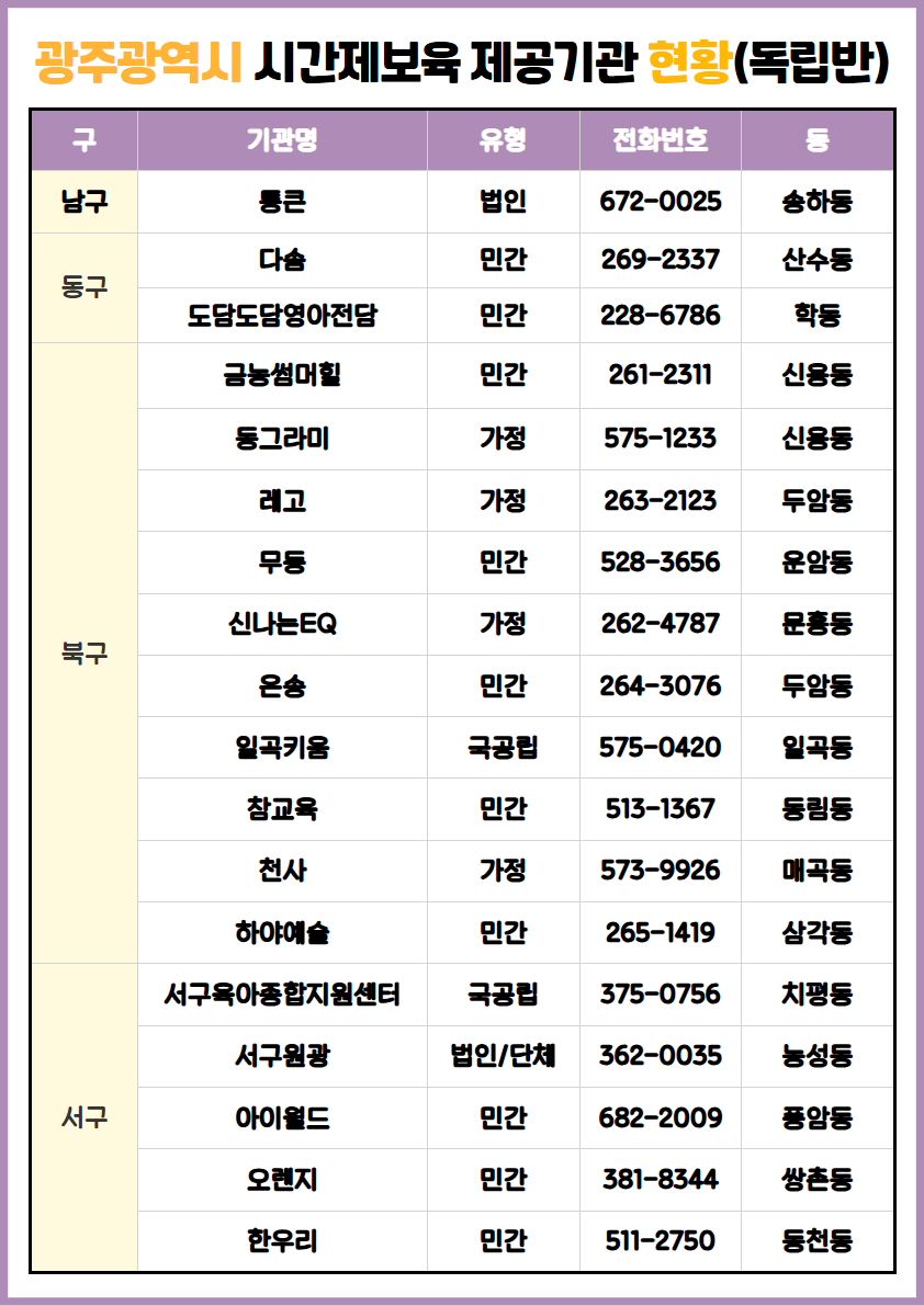 - 제공기관 : 시간제보육 제공기관으로 지정된 어린이집, 육아종합지원센터 등