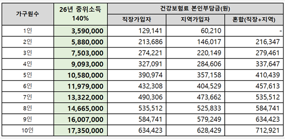 ○ 2026년 건강보험료 소득판정기준표