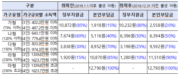 ※ 두 자녀 이상 다자녀 가정에 본인 부담금의 10% 추가 지원