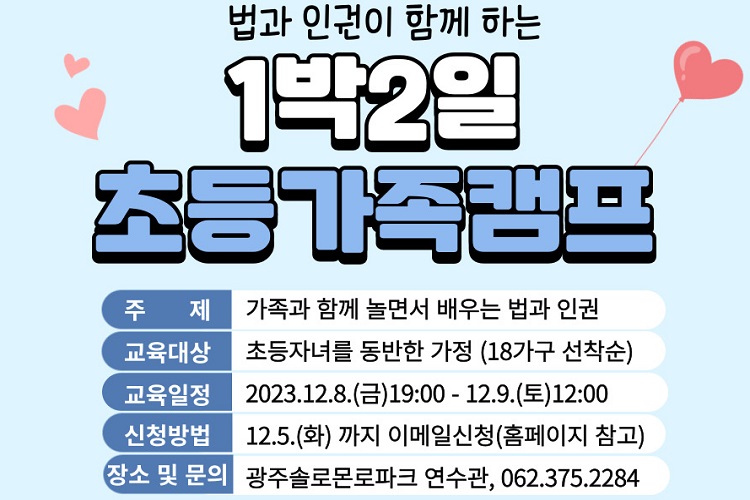 법무부 광주 솔로몬로파크 법과 인권이 함께 하는 <1박 2일 초등가족 캠프 안내>