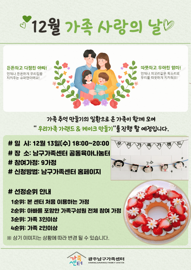 행사내용 12월 가족사랑의 날[가족가랜드&케이크만들기]